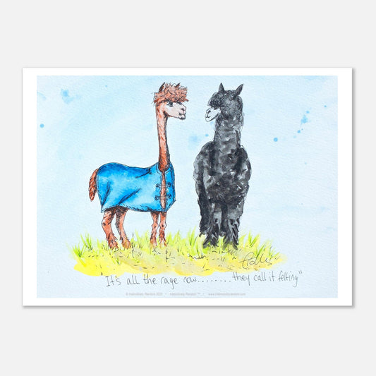 A premium collection blending hand-drawn watercolour details with subtle photographic textures to create playful alpaca artwork with character and charm. Printed using high-quality Giclée methods for rich colour and a polished gallery-style finish.